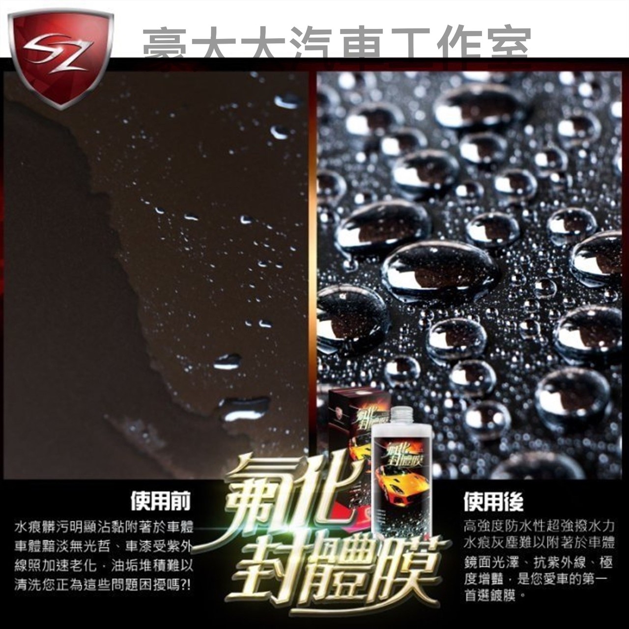 SZ 氟化封體膜【超強防水潑水效果】極度光亮形同鏡面般保護 500ML 高強度持久防水性 水滴及灰塵難以附著